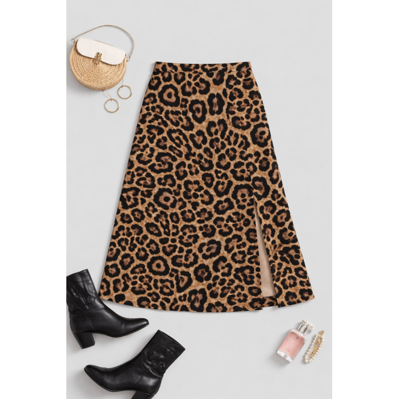 Tags: women skirt, leopard print skirt, slit skirt, midi skirt women, party wear skirt, casual skirt women, animal print skirt, high waist skirt, fashion skirt, trendy women clothing