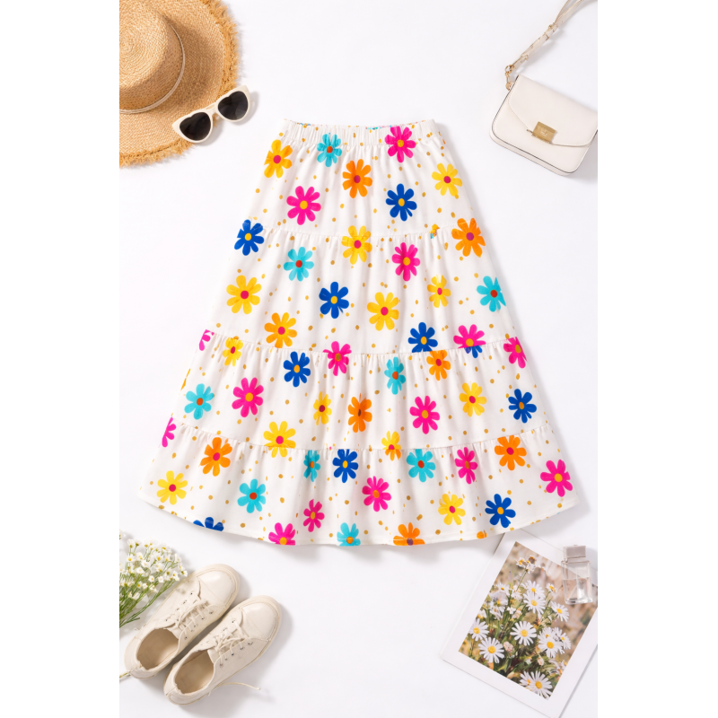 Tags: floral skirt, tiered skirt, women skirt, ladies skirt, flowy skirt, printed skirt, summer skirt, casual skirt, trendy skirt, western wear, women clothing, fashion skirt, boho skirt