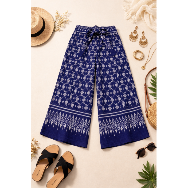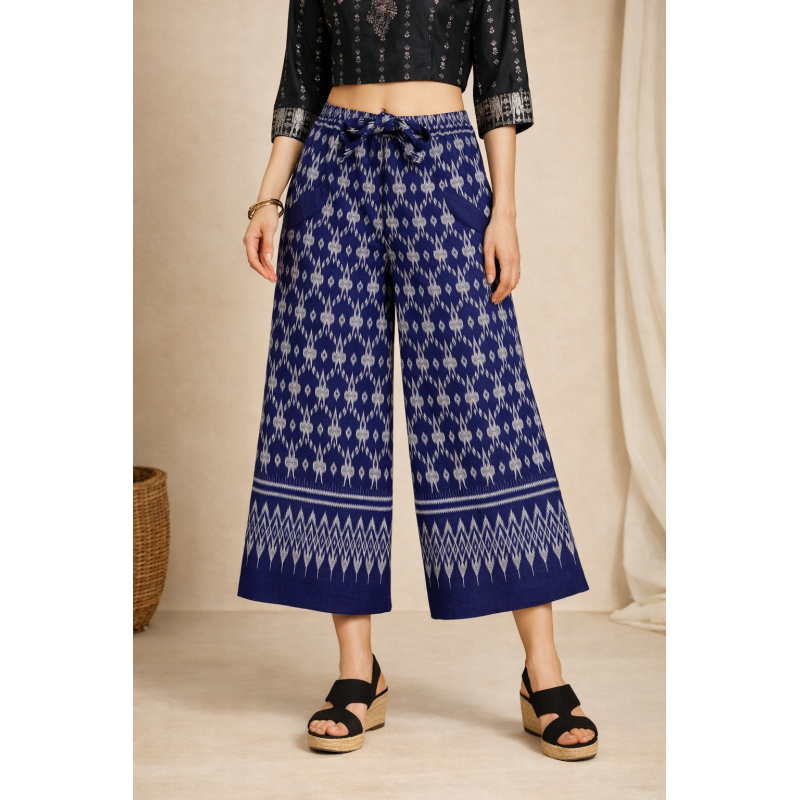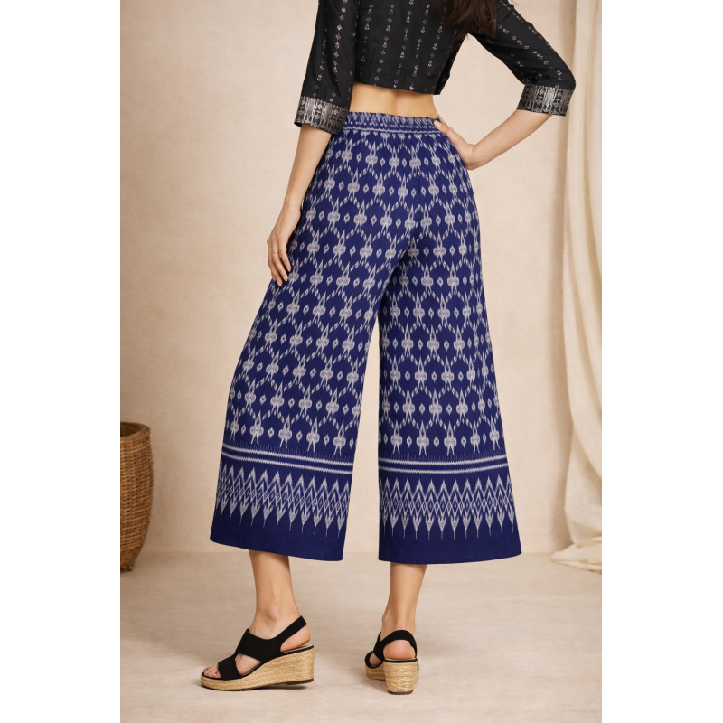 Tags: palazzo, women palazzo pants, ethnic wear women, indigo palazzo, ikat print palazzo, casual palazzo pants, summer palazzo, wide leg pants women, comfortable palazzo, daily wear palazzo, travel wear women, indo western bottom wear
