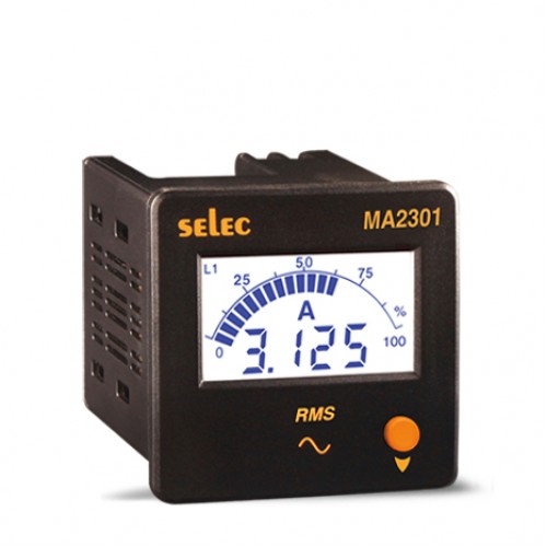 - 3Ø Digital ammeter with LCD display, Bar graph representation for current, 230V AC