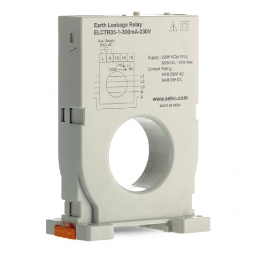 • Earth leakage relay with inbuilt CBCT Leakage current fixed : 30mA, 1 C/O, 230V AC